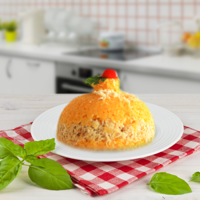 Em uma tigela, coloque o Flocão Fibras Coringa, o sal e hidrate com água aos poucos. Misture bem, e deixe decansar por 10minutos. Coloque 400ml de água na parte inferior de uma cuscuzeira individual. Distribua metade da massa úmida na parte superior da cuscuzeira. Espalhe o recheio no meio. Cubra com o restante da massa apertanto levemente. Leve ao fogo médio e após começar a ferver deixe aproximadamente por 4 minutos.