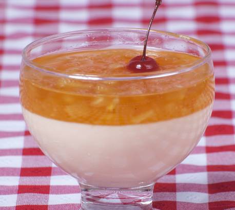 Creme: Hidrate a gelatina com água e deixe descansar durante 05 minutos; em seguida aqueça no microondas ou em banho-maria. Bata no liquidificador todos os ingredientes inclusive a gelatina já aquecida. Coloque em um refratário ou em taças individuais, cubra com filme plástico e leve a geladeira até ficar consistente. Na hora de servir cubra com o doce de abacaxi.